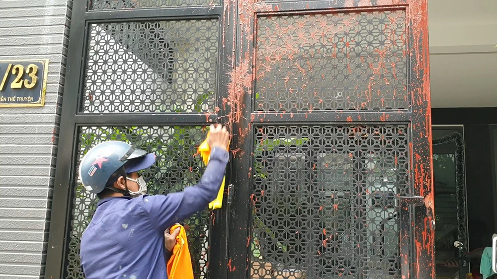 Ngày 10-1, Công an phường Tân Sơn Nhì đã lập hồ sơ, chuyển Cơ quan CSĐT Công an quận Tân Phú điều tra vụ hủy hoại tài sản bằng hình thức tạt sơn vào nhà bà PĐHA (40 tuổi, ngụ phường Tân Sơn Nhì).