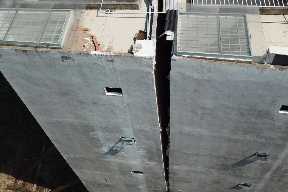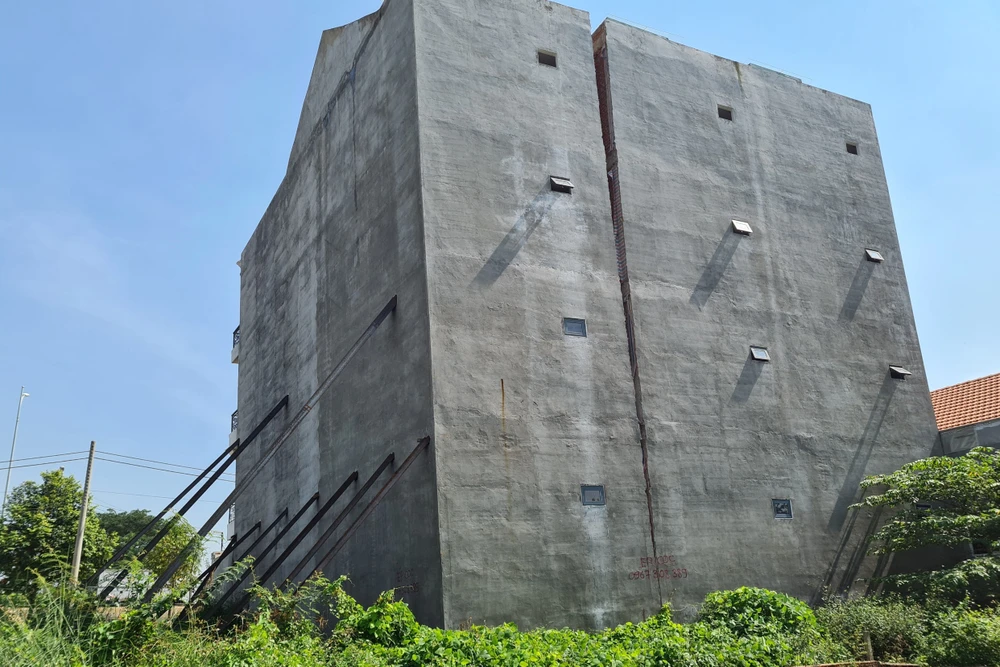 Theo ghi nhận, căn nhà bị nghiêng thuộc dự án nhà liền kề ba căn. Công trình này được đưa vào sử dụng năm 2018. Nhìn bằng mắt thường căn nhà này bị nghiêng so với trục vuông góc mặt đất tính từ đỉnh công trình khoảng 0,3 đến 0,4 m.