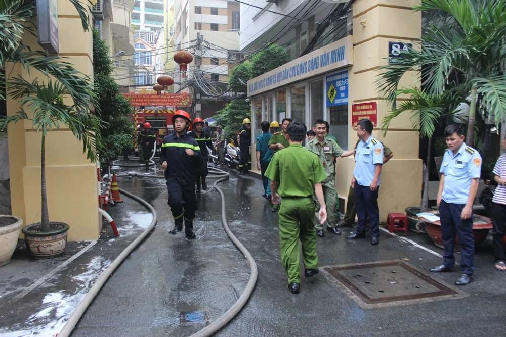 Lực lượng Cảnh sát PCCC quận 1 đã điều 6 xe chuyên dụng cùng hơn 30 chiến sĩ đến hiện trường để chữa cháy. Toàn bộ khu vực được phong tỏa để triển khai công tác cứu hộ. Công ty điện lực cũng cắt toàn bộ điện ở khu vực để đề phòng cháy nổ.