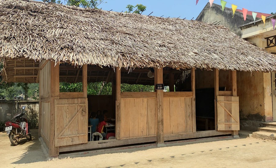 Thiếu phòng học nên 3 lớp phải học trong nhà tranh tre, nứa lá suốt hai năm qua.