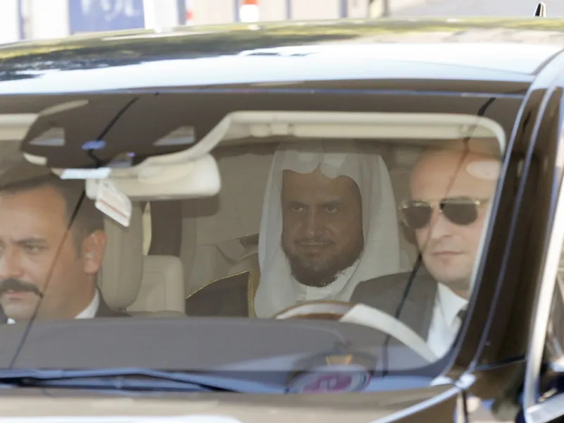 Bộ trưởng Tư pháp Saudi Arabia Saud al-Mojeb (đội khăn) rời đi sau cuộc gặp với trưởng công tố Istanbul (Thổ Nhĩ Kỳ) ngày 29-10. Ảnh: GETTY IMAGES