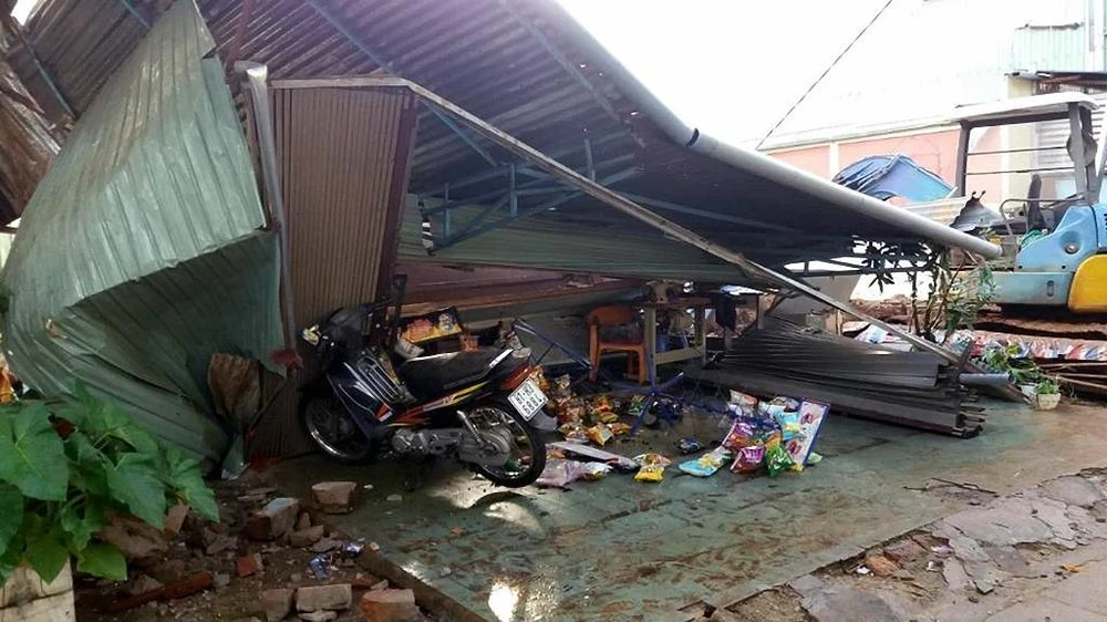 Theo phản ánh của gia đình bà Ngô Nguyễn An Bình (đường Trần Quang Khải, TP Pleiku), khoảng 15 giờ chiều 17-6, trong cơn mưa to, toàn bộ căn nhà đồng thời là nơi bán tạp hóa của bà bị đổ sập hoàn toàn. Một xe SH, nhiều hàng hóa cùng tài sản bị hư hỏng nặng. Trong nhà lúc ấy có bảy người nhưng may mắn kịp thoát ra ngoài.