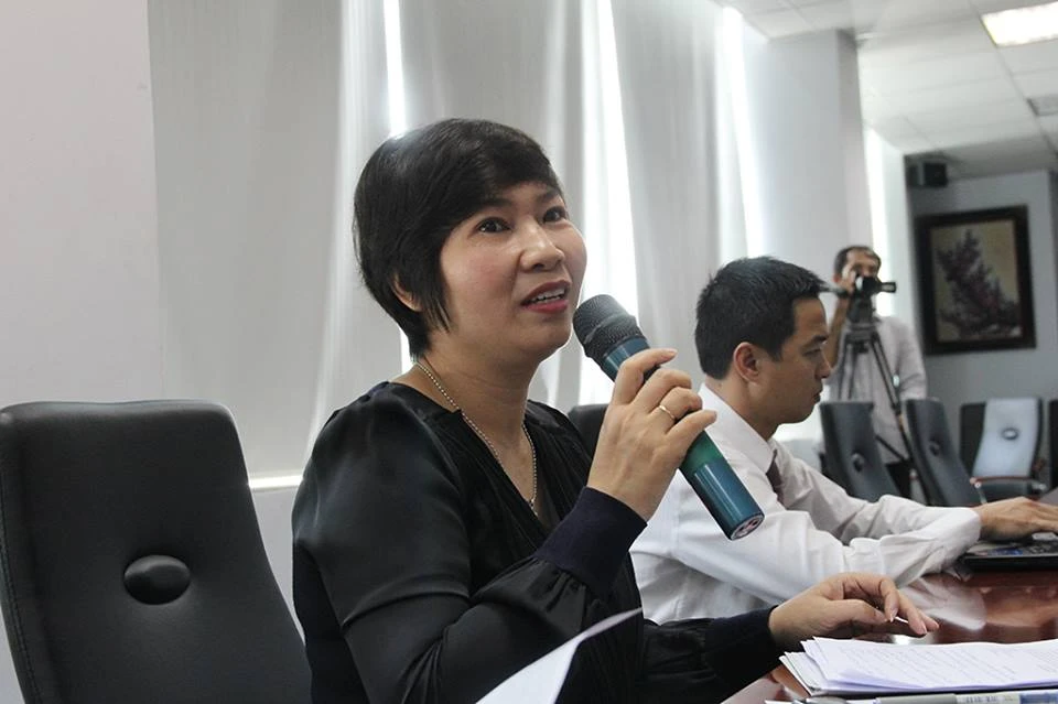 Bà Vũ Thị Khuyên, Trưởng Văn phòng Chính sách nhà ở và Thị trường bất động sản TP, đang phát biểu. Ảnh: HOÀNG GIANG