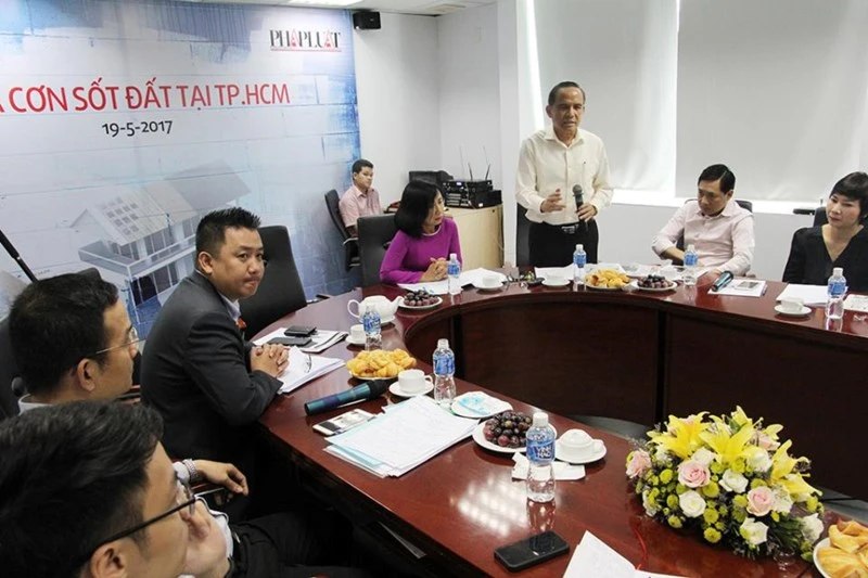Khảo sát gần đây cho thấy giá đất ở hàng loạt khu vực tăng giá vùn vụt. Để làm rõ nguyên nhân và tìm ra các giải pháp làm lành mạnh thị trường bất động sản, giúp người mua tránh được rủi ro, báo Pháp Luật TP.HCM tổ chức tọa đàm “Giải mã cơn sốt đất tại TP.HCM”. Cuộc tọa đàm diễn ra sáng 19-5 tại Tòa soạn Pháp Luật TP.HCM.