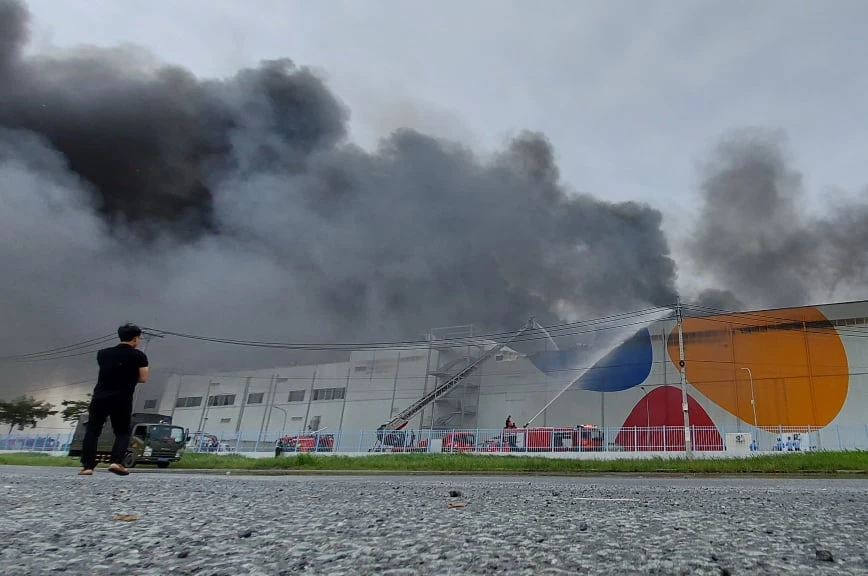 Các công nhân cho biết đám cháy xảy ra vào khoảng 8 giờ 30 cùng ngày tại một Công ty chuyên sản xuất và chế biến thực phẩm nằm trên đường số 1, KCN Hiệp Phước.