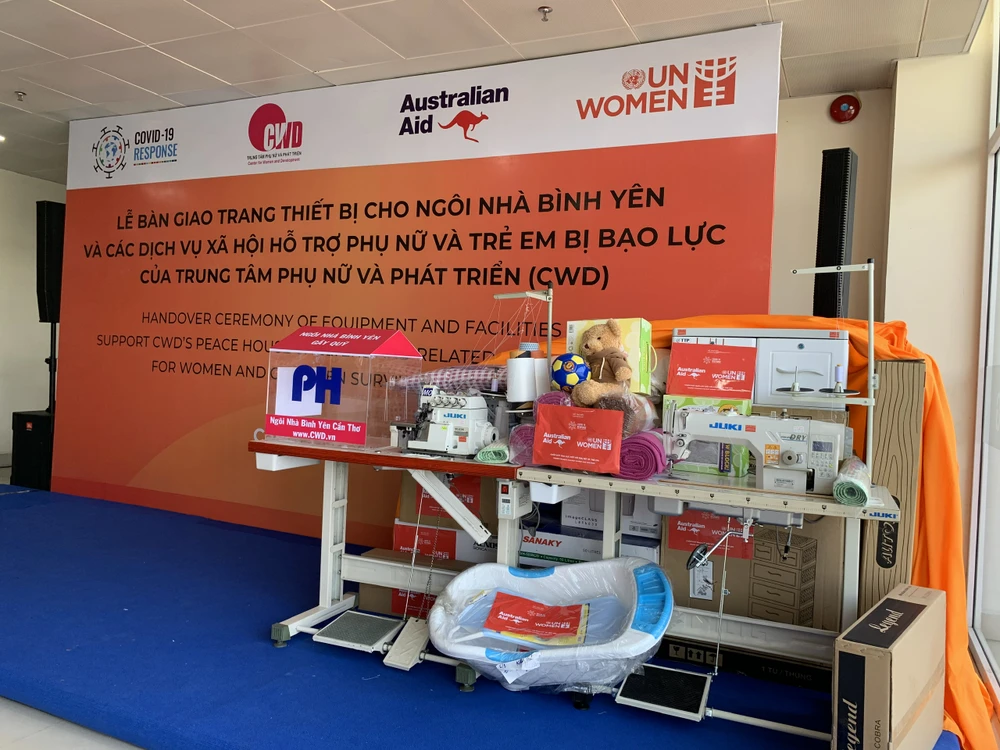 Ngày 12-3, tại Cần Thơ, UN WOMEN và Chính Phủ Úc đã bàn giao trang thiết bị cho Nhà bình yên và các dịch vụ xã hội hỗ trợ phụ nữ và trẻ em bị bạo lực gia đình của Trung tâm Phụ nữ và Phát triển (CWD).
