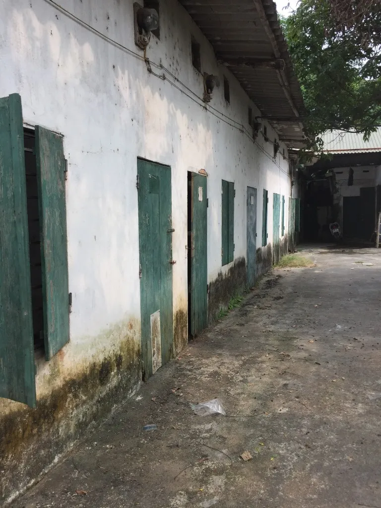 Ngôi nhà cấp bốn cũ có những mảng tường cũ đã bắt đầu hoen ố, không gian sống cũ kĩ.