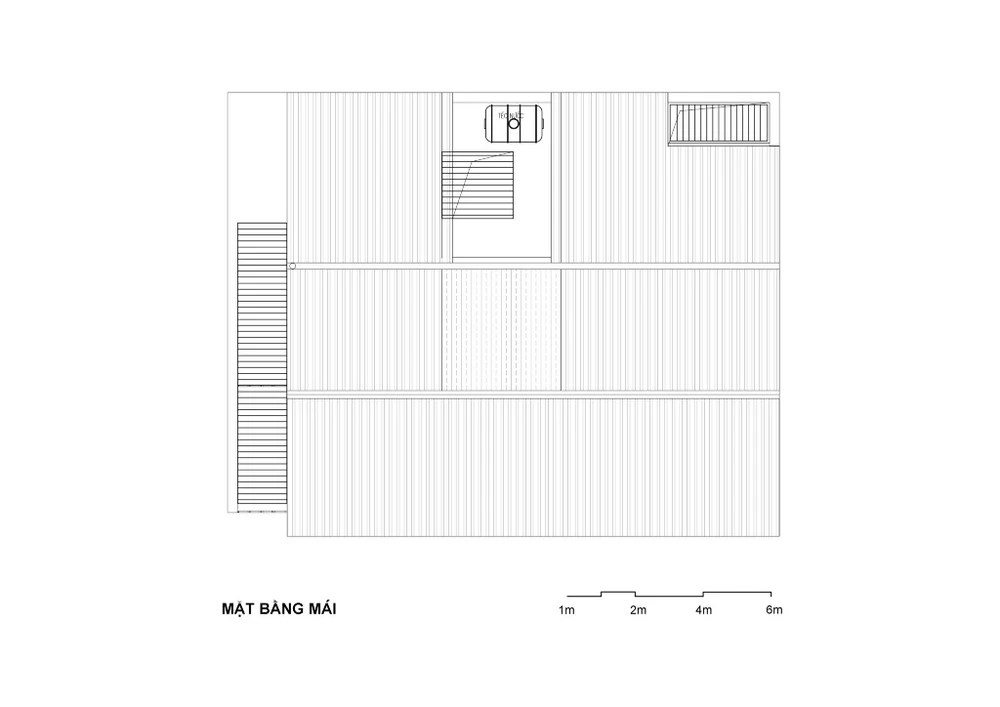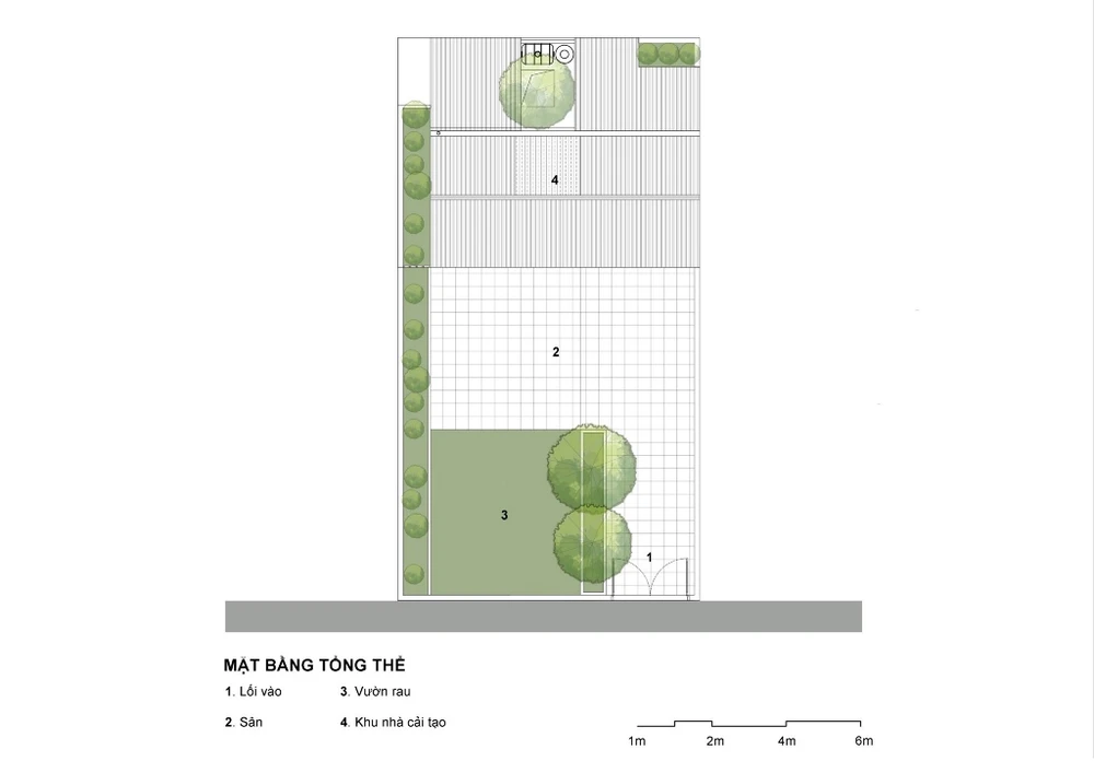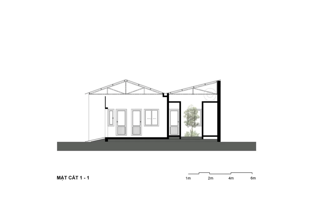KTS Nguyễn Đình Toản (AICC Architecture) cho biết, đối với công trình này KTS đã vận dụng một số thủ pháp phân tách và hợp nhất khối. Thủ pháp này giúp trừ các mảng tường cũ và mới để chia lại không gian cho toàn bộ ngôi nhà một tầng với các chức năng chính: một phòng khách, một bếp + phòng ăn, ba phòng ngủ và hai phòng vệ sinh.