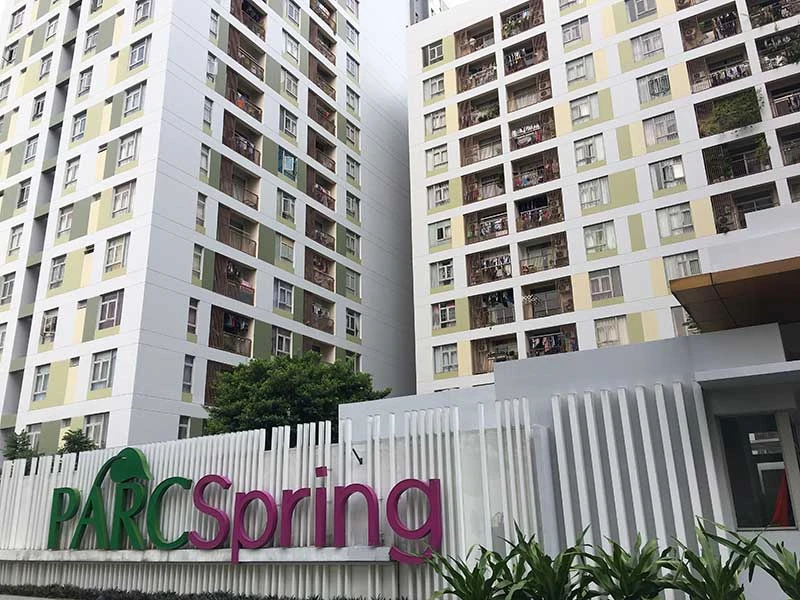 Chung cư ParcSpring, nơi vừa xảy ra vụ cháy vào chiều 1-4. Ảnh: Đ.TRANG