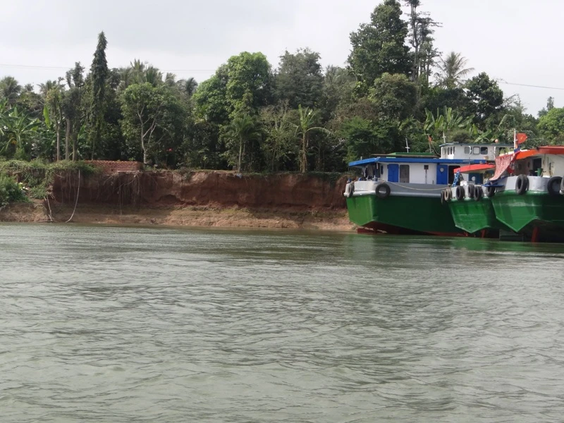 Sát bên những đoạn bờ sông sạt lở có rất nhiều ghe tàu nằm chờ chở cát đi. Đại diện Sở TN&MT tỉnh Đồng Tháp cho biết thêm trên sông Tiền đoạn qua địa bàn tỉnh Đồng Tháp có rất nhiều mỏ cát. Hầu như chỗ nào cũng có cát. Ảnh: TRUNG THANH