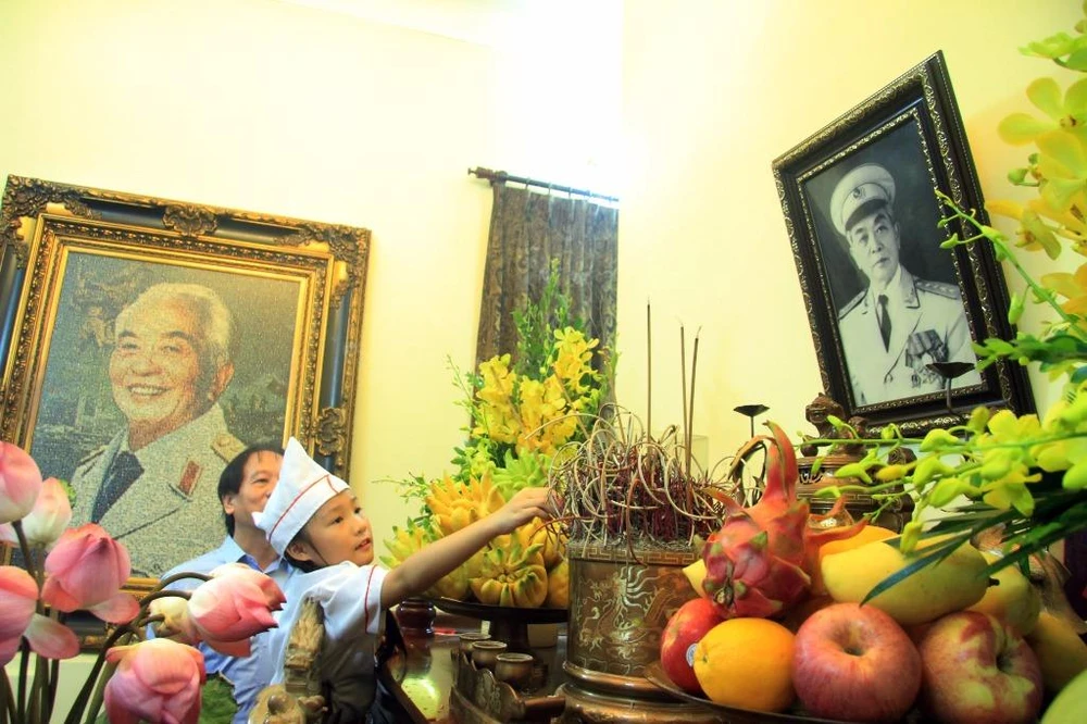 Mọi người thắp hương tỏ lòng thành kính, biết ơn đến công ơn to lớn của Đại tướng Võ Nguyên Giáp.