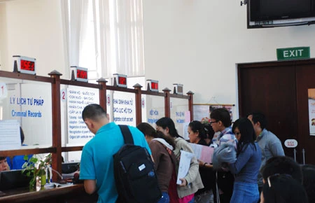 Tại Sở Tư pháp, ngay từ sáng sớm đã đông nghẹt người đến giao dịch. Bà Hoàng Thị Hương Lan, Phó Chánh văn phòng Sở, nói: “Tôi đến cơ quan lúc 7 giờ 10 phút đã thấy người dân đến ngồi chật hết tất cả hàng ghế chờ”. Bà Nguyễn Thị Phượng, cư xá Thanh Đa, phường 27, quận Bình Thạnh đến Sở làm thủ tục định cư tại Mỹ cũng cho biết nghĩ đầu năm sẽ vắng người hơn nhưng thực tế là ngoài sức tưởng tượng.