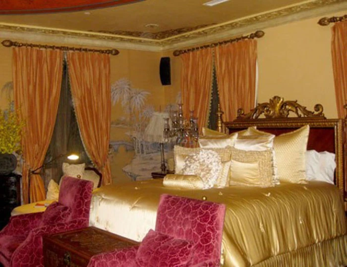 Mọi đồ dùng trong nhà đều toát lên vẻ sang trọng. Trên trần nhà của phòng khách còn được dát vàng 24k.