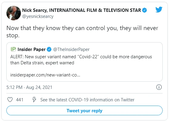 Các tuyên bố của nhà dịch tễ học sau đó đã được hãng tin Insider Paper đăng tải với tiêu đề: “CẢNH BÁO: Siêu biến thể mới có tên ‘COVID-22’ có thể nguy hiểm hơn chủng Delta”.