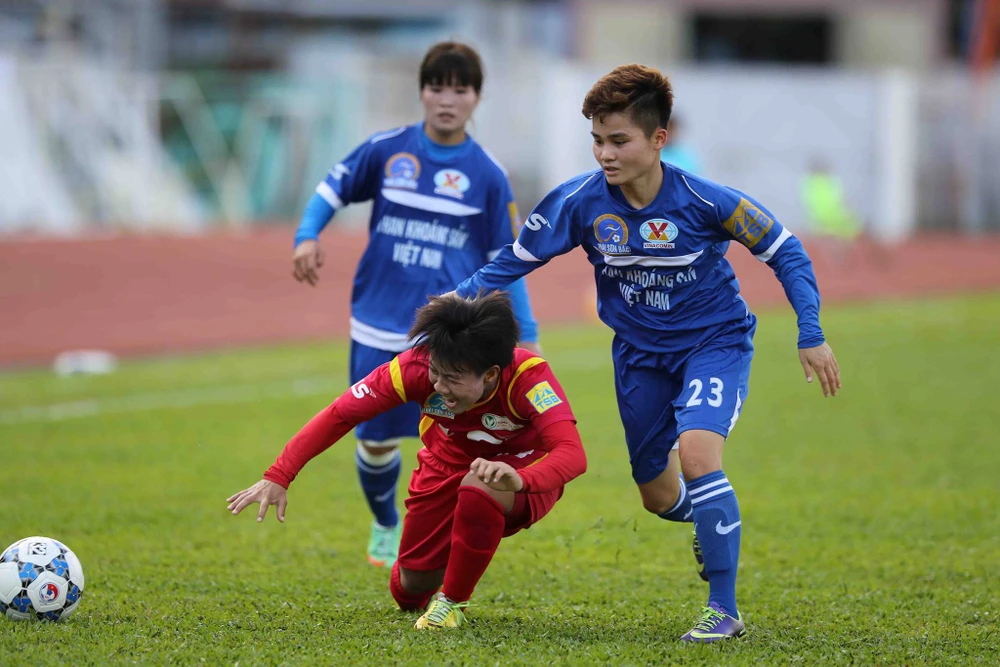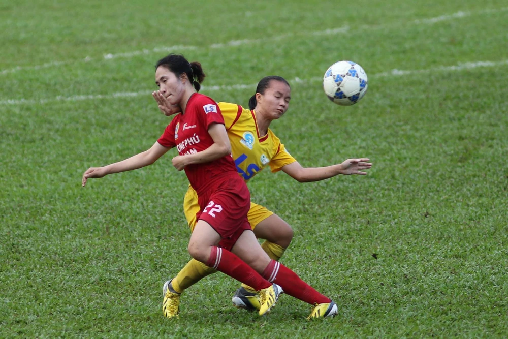 Nhưng phải đến một sai số trong hàng thủ của đội bóng vùng Mỏ, nhà ĐKVĐ mới khai thông được thế bế tắc ở phút 33. Từ quả phạt góc, Thu Thảo đã tận dụng pha phá bóng không dứt khoát của TKS VN để dứt điểm, đưa TP.HCM I dẫn điểm.