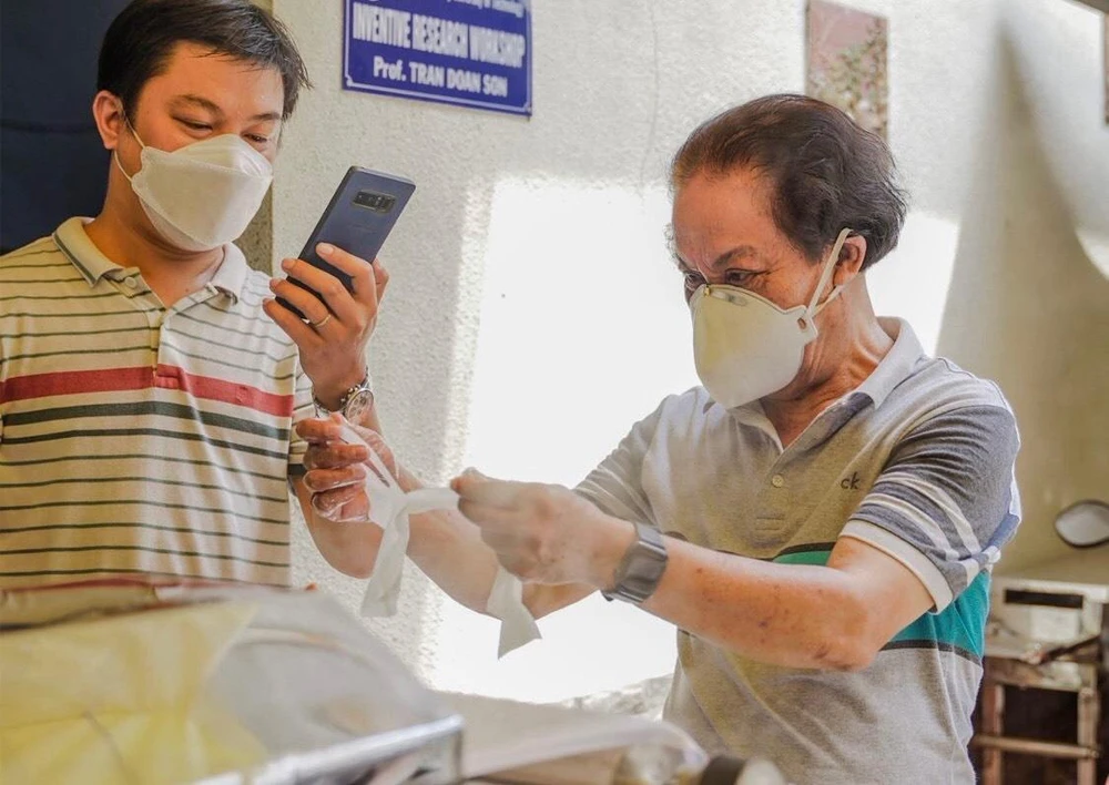 Nhà giáo nhân dân-GS-TS Trần Doãn Sơn đang thao tác trên các thiết bị do ông và cộng sự sáng chế. Ảnh: NT |