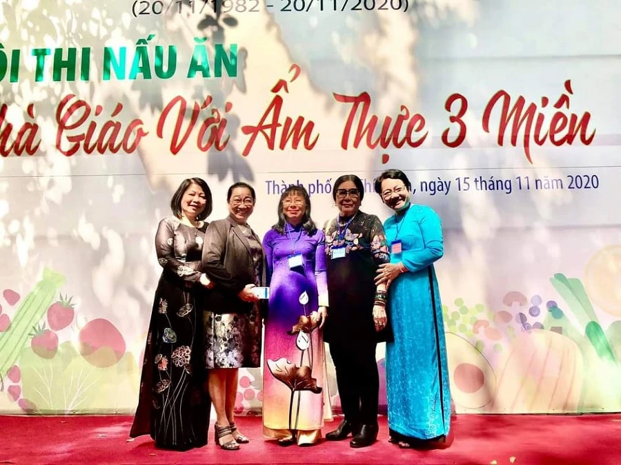 Nhà giáo Ưu tú Triệu Thị Chơi (thứ 2 từ phải qua) trong một lần tham gia hội thi nấu ăn của ngành GD&ĐT TP.HCM. Ảnh: SỞ GD&ĐT TP