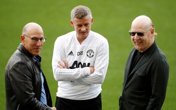 HLV Ole Gunnar Solskjaer và anh em nhà Glazer. ẢNH: REUTERS