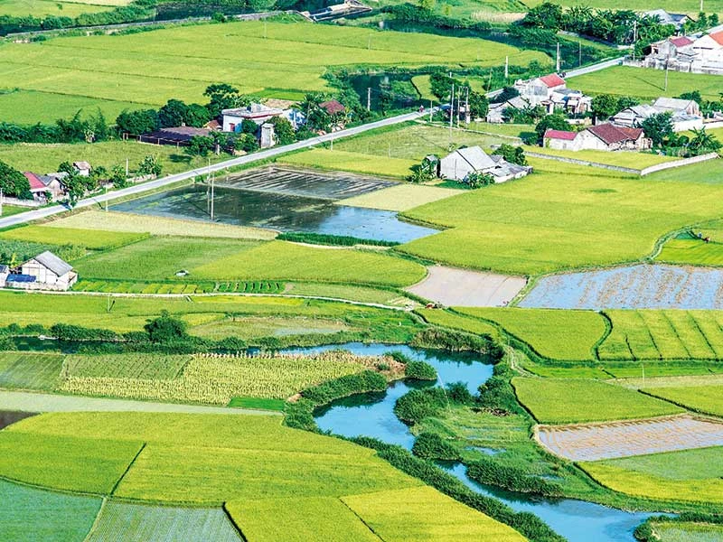 Nhà của người Nam Bộ nằm bên những cánh ruộng bao la. Ảnh: BST