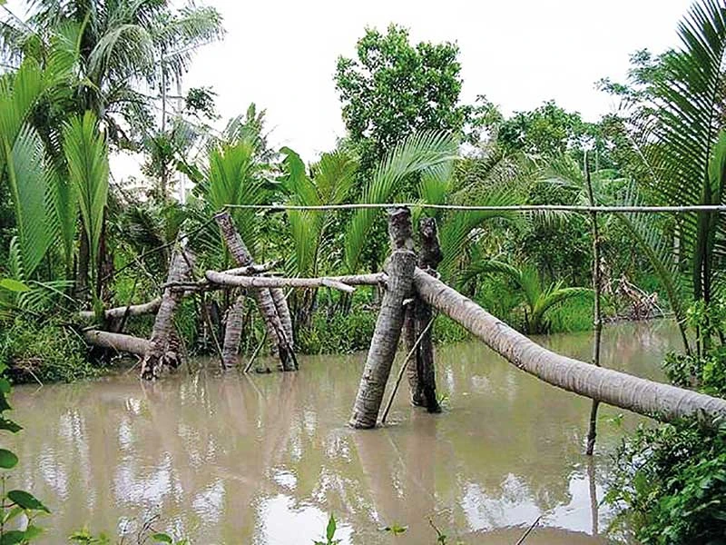 Cây cầu bằng thân dừa thân quen của người dân Nam Bộ. Ảnh: BST