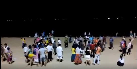 Du khách Trung Quốc múa hát trên bãi biển Nha Trang. Ảnh: TƯ LIỆU
