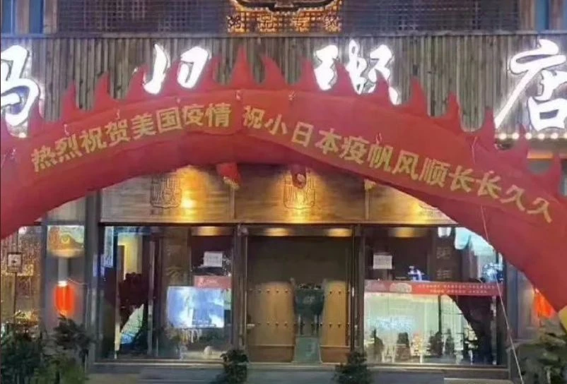 Tờ báo cũng chỉ trích thông điệp chống Nhật trên biểu ngữ của nhà hàng.
