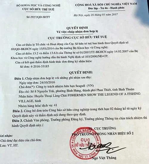 Thông cáo báo chí còn nhấn mạnh Seagull là chủ đầu tư Bảo tàng nước mắm Làng Chài Xưa và Nhà hát nghệ thuật Làng Chài - Fishermen Show đã hoạt động hơn hai năm qua. Show diễn này đã đăng ký bản quyền tại Cục Sở hữu trí tuệ và được cấp phép biểu diễn hằng đêm, là sản phẩm du lịch văn hóa đặc sắc được hàng trăm ngàn du khách trong và ngoài nước yêu thích.