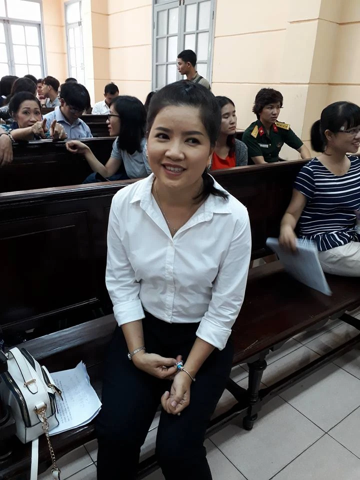 Nụ cười gượng mệt mỏi của Ngọc Trinh tại phiên tòa sơ thẩm. Ảnh: HÒA BÌNH