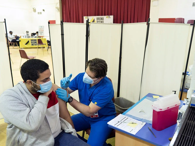 Tiêm vaccine ngừa COVID-19 của Moderna tại hạt Bronx, TP New York (Mỹ). Ảnh: JAMES ESTRIN/NYT