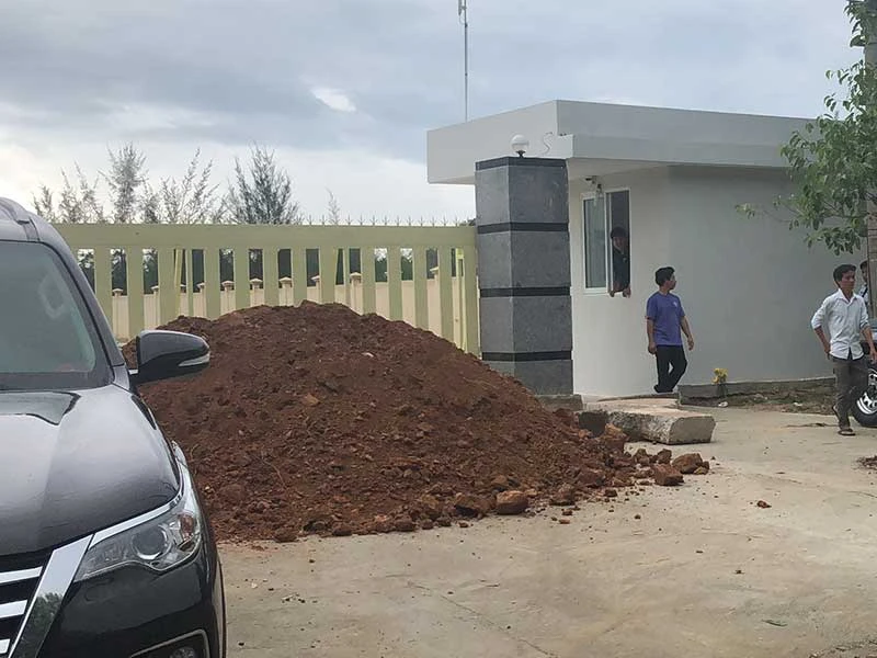 Sáng 1-10, khi những người trong nhà máy chuyển các tấm bê tông để thông xe thì tám thanh niên lạ mặt đến cản lại. Sau đó xe tải 76C-040… chạy đến đổ cả xe đất (khoảng 7 m3) ngay trước cổng nhà máy, khi bảo vệ ra ghi hình thì nhóm người này chạy đến hăm dọa.