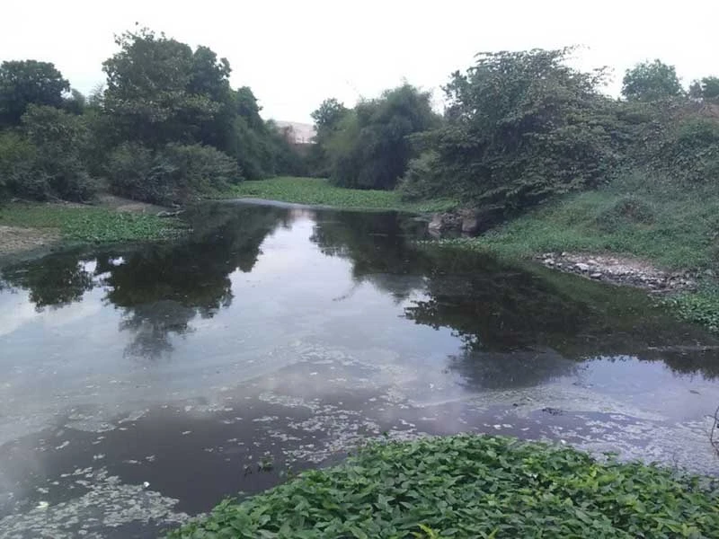 Khu vực xả thải của Nhà máy cồn Tùng Lâm nguồn nước thường có dấu hiệu ô nhiễm. Ảnh: MT