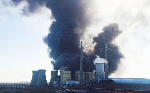 Khói đen phủ kín bên trên nhà máy điện Hoa Năng
