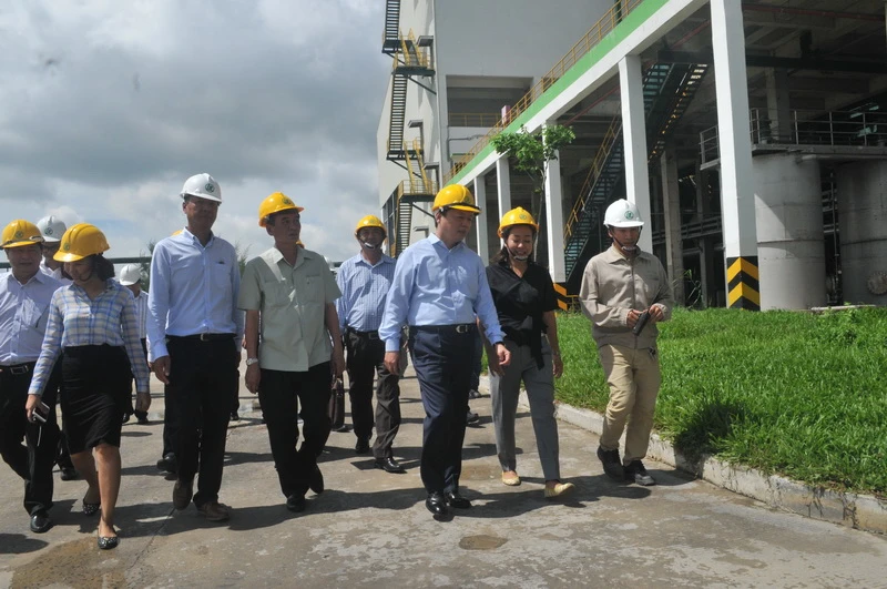 Bộ trưởng Trần Hồng Hà lưu ý phía nhà máy khi đi vào hoạt động chính thức cần tiếp tục thực hiện lời cam kết bảo vệ môi trường tốt hơn. Ảnh: BÌNH AN