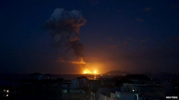 Truyền hình trung ương Trung Quốc (CCTV) cung cấp vài cảnh quay của đám cháy nhưng không cung cấp thông tin chi tiết, cụ thể. Tân Hoa Xã cho hay vụ nổ xảy ra vào khoảng 19:00 theo giờ địa phương (11:00 GMT).