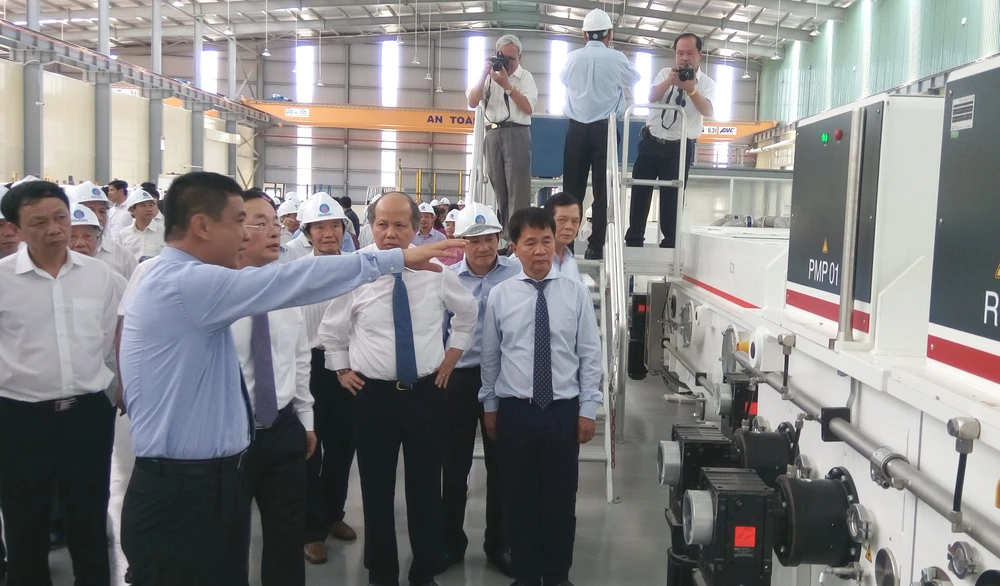 Quan khách đang tham quan nhà máy kính tiết kiệm năng lượng hàng đầu Đông Nam Á. Ảnh: QH