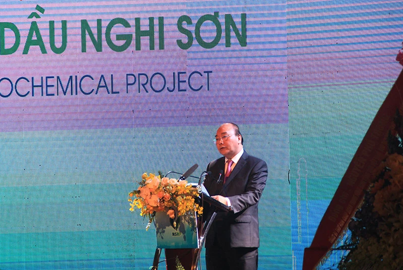 Thủ tướng Nguyễn Xuân Phúc khẳng định: "Liên hợp Lọc hóa dầu Nghi Sơn là biểu tượng tốt đẹp của sự hợp tác quốc tế thực chất và hiệu quả". Ảnh: Đ.TRUNG