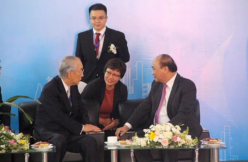 Thủ tướng trò truyện cùng các nhà đầu tư dầu khí đến từ Nhật Bản. Ảnh: Đ.TRUNG