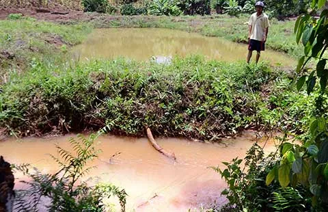 Suối Đắk Dao nơi xảy ra hiện tượng cá chết và người dân bị dị ứng da khi tiếp xúc nước. Ảnh: ĐẠI LIÊN