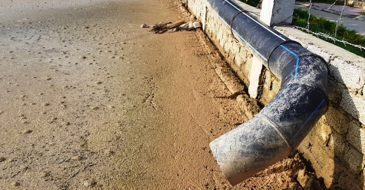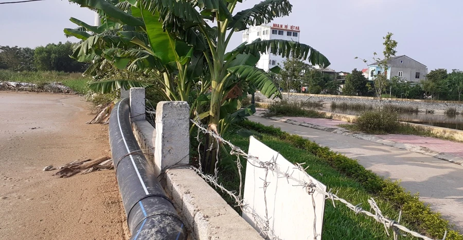Cuối bể chứa bùn thải của Nhà máy nước máy Hưng Vĩnh có đường ống lớn.