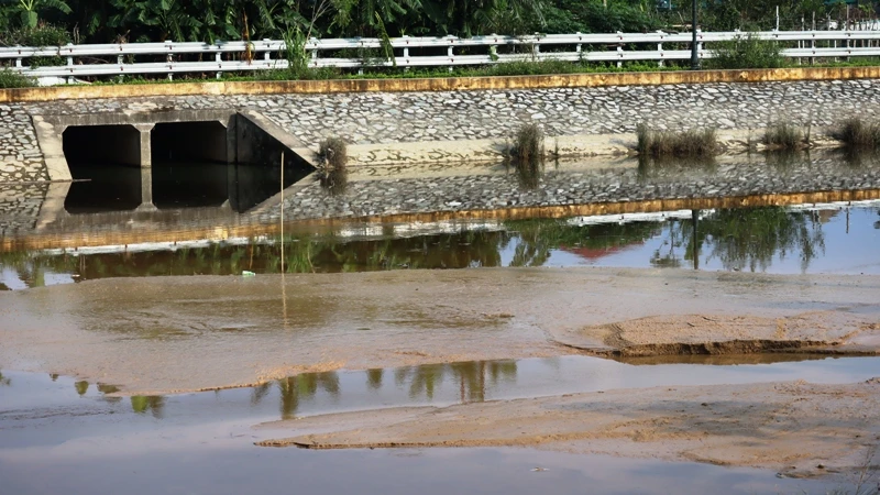 Bùn thải xả ra lấp một góc hồ điều hòa Cửa Nam.