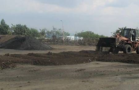 Nhà máy ủ phân vi sinh lộ thiên gây ra mùi hôi thối, ruồi, bụi. Ảnh: TD