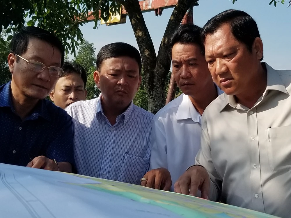Phó Chủ tịch tỉnh Cà Mau Lâm Văn Bi (bìa phải) cùng nhiều sở, ngành tỉnh đi khảo sát địa điểm mới ở xã Khánh An, huyện U Minh để chuẩn bị cho một nhà máy rác khác hiện đại hơn và có tầm chiến lược lâu dài. Ảnh: CHÍ HẠO