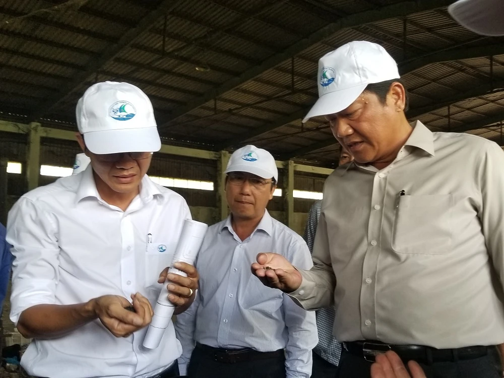 Ông Lâm Văn Bi và lãnh đạo Nhà máy rác TP Cà Mau trao đổi về các giải pháp nhằm sớm đưa nhà máy hoạt động trở lại. Ảnh: CHÍ HẠO