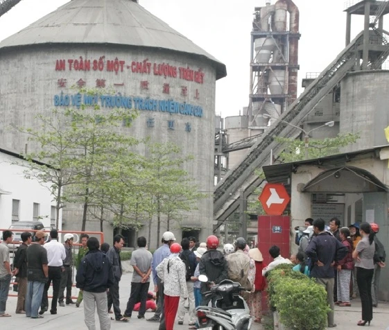 Người dân bao vây công ty xi măng. Ảnh: VIẾT LONG