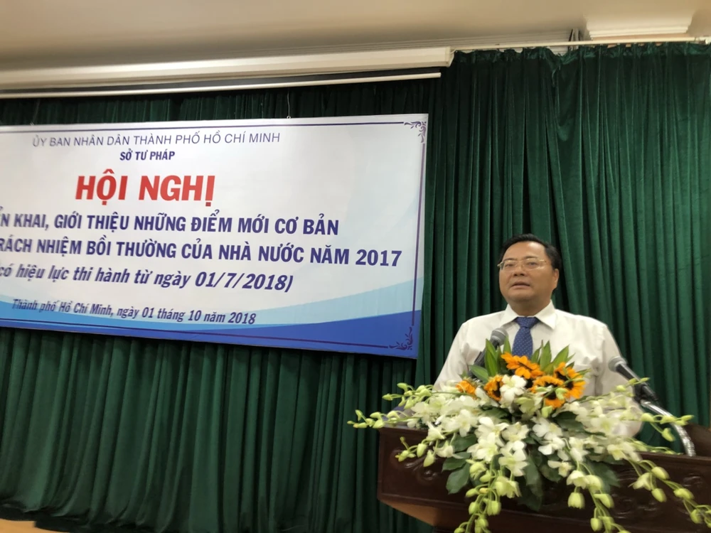 Ông Nguyễn Văn Vũ (Phó Giám đốc Sở Tư pháp TP.HCM) phát biểu khai mạc tại hội nghị về việc triển khai thi hành LTNBTCNN năm 2017 nhằm đảm bảo tổ chức thực hiện đầy đủ, kịp thời các quy định của pháp luật về trách nhiệm bồi thường của Nhà nước mới được ban hành trên địa bàn TP.