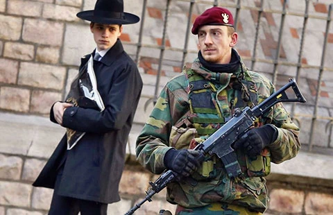 Quân đội canh gác trường học Do Thái ở Bỉ. Ảnh: REUTERS