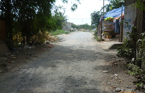 Dân tự bỏ tiền đổ đất, đá để khắc phục “đoạn đường đau khổ” ở khu phố 2, phường Bình Chiểu, Thủ Đức (TP.HCM). Ảnh: HOÀNG THƠ