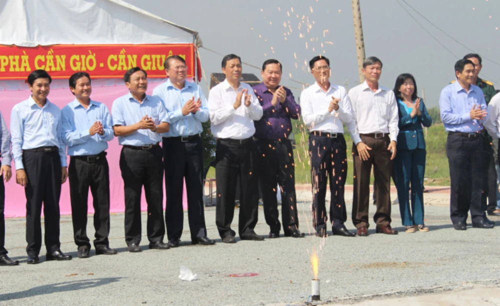 Ngày 24-11, tin từ Sở GTVT TP.HCM cho biết bến phà nối huyện Cần Giuộc, tỉnh Long An với huyện Cần Giờ, TP.HCM qua sông Soài Rạp đã được chính thức khởi công xây dựng.