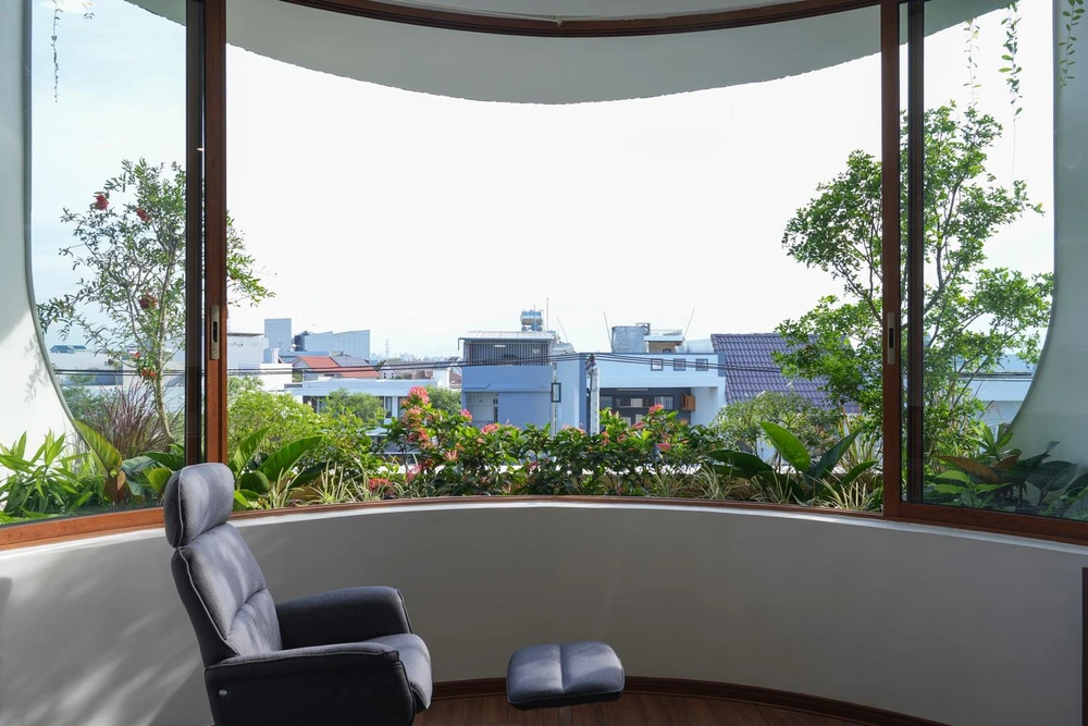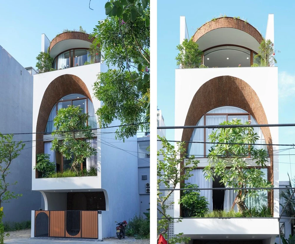 VUx House có diện tích điển hình của nhà phố là 5 m x 20 m, tọa lạc tại huyện Ngũ Hành Sơn, TP Đà Nẵng. Hai vấn đề lớn nhất là thiếu ánh sáng và thông gió của nhà phố được kiến trúc sư Tô Hữu Dũng (85 Design) xử lý.