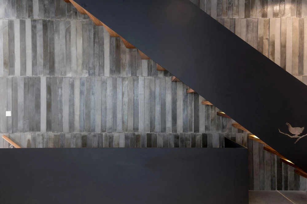 Các vật liệu quen thuộc được sử dụng như bê tông thô, thép, gỗ.